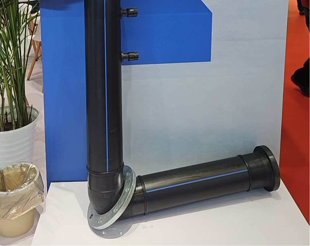 展会中,公元管道暖通专用领域重点展示的专用大型商用空调定制组件采用100级HDPE优质原料,配合高精度焊接设备,可针对复杂走向、异形结构及多管路集成等场景进行量身定制。同时,其产品覆盖50~315全规格,其中热镀锌法兰盘经1000小时以上盐雾试验,耐腐蚀性能优越。