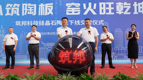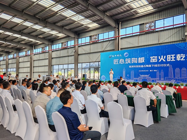 八月的荣昌,窑火炽盛。8月20日,以“匠心筑陶板·窑火旺乾坤”为主题的筑邦科技硅晶石陶板下线交付仪式,在筑邦绿建产品生产基地圆满举行。