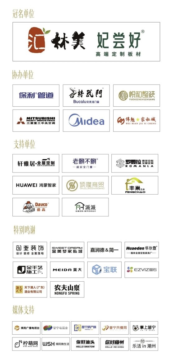 轩雅居定制、老赖不赖门窗、罗曼拉定制、揭阳硕隆商贸、揭阳丰巢五金、德高防水、派派全屋定制、华为智能、宝联大金、美大集成灶、宏栩·萤石智能、创一装饰、天下潮人(广东)酒业有限公司、农夫山泉、保利管道