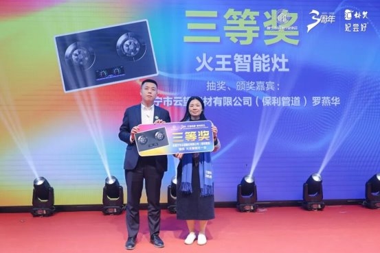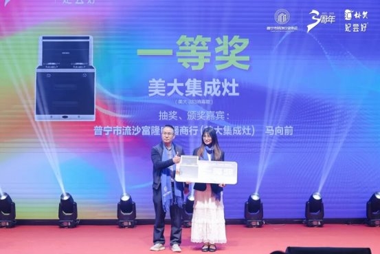 一等奖:普宁市流沙富隆电器商行马向前经理提供的美大集成灶,花落幸运嘉宾。