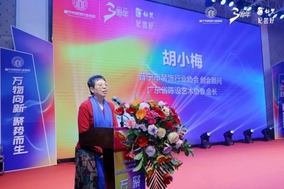 广东省陈设艺术协会会长胡小梅女士在庆典上发表了热情洋溢的致辞,向普宁市装饰行业协会成立三周年暨设计分会成立表示热烈祝贺。
